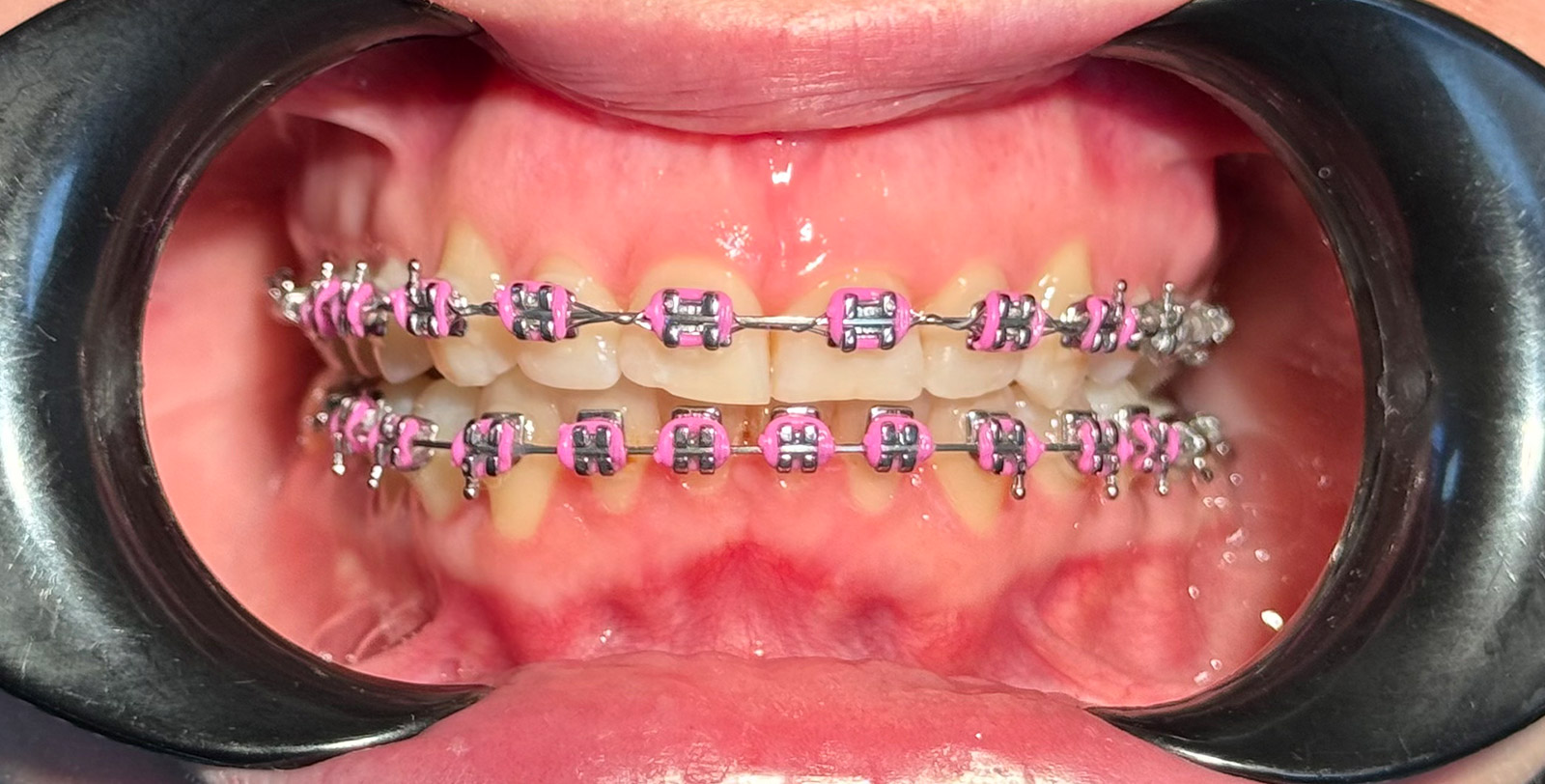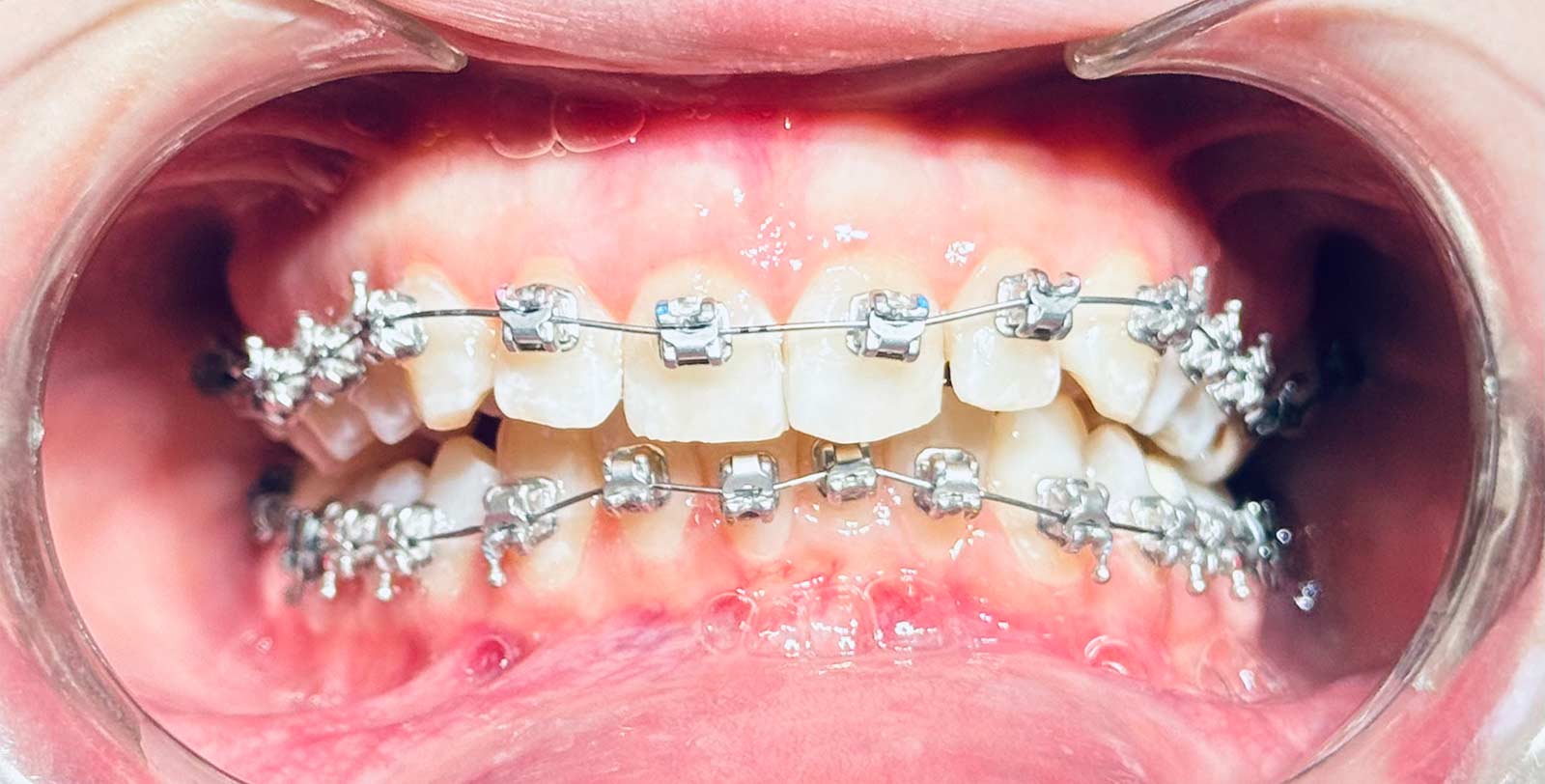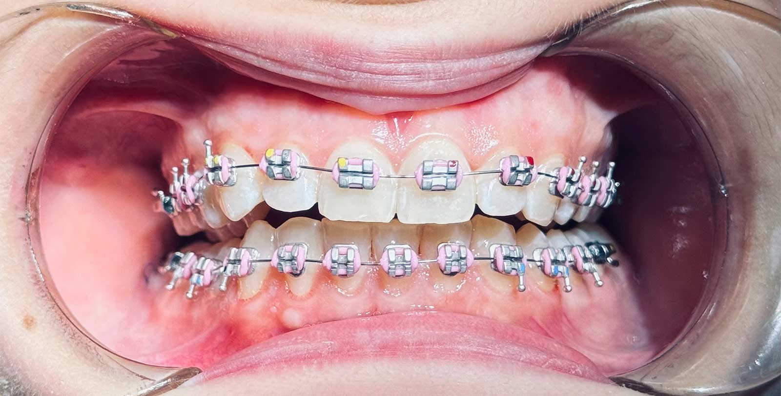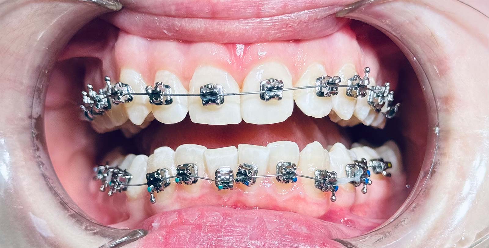 Наприклад, колір брекетів. Вони металеві, і їх дуже добре видно на зубах.Також металеві брекети бувають з родієвим напиленням, завдяки цьому вони мають світло-сріблястий колір та менше помітні на зубах